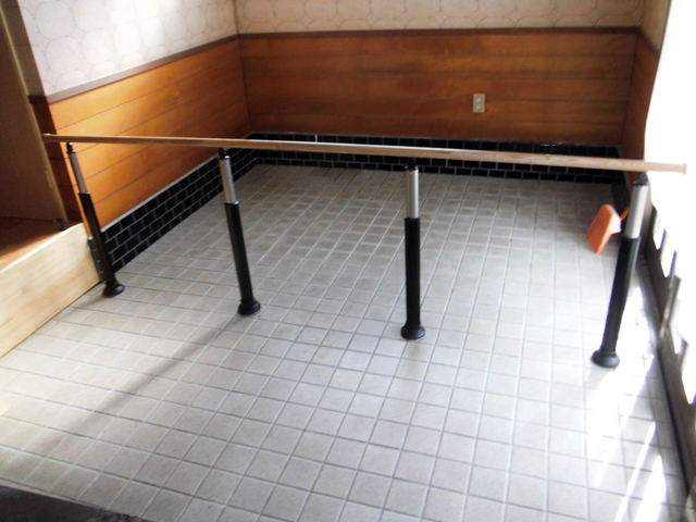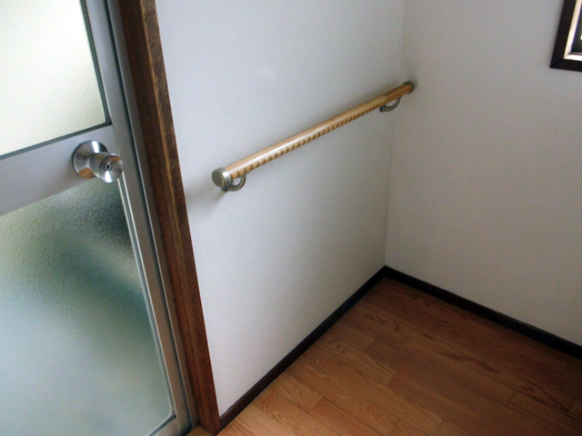 階段に手すりをつけています。 歩行補助のための手すり 手すりを付けています。 素の状態では段差が大きい状態です。 段差を低く致しました。 段差を解消する為に、途中に段差を1段設けました。 手すりと、段差があった足元をスロープにしました。 手すりをつけています。 介護リフォーム10 トイレ用手すり。トイレも和式から洋式へ変更しています。 手すりをつけています。 手すりをつけています。 元々あった段差をなくしてフラットにしています。 段差があったトイレの出入り口の段差をなくしてフラットにしています。